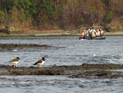 This morning we found a perfect anchorage on Pearl Islands on the lee of Bayoneta and Vivienda Islands. Vasco Nunez de Balboa named this archipelago Pearl Islands on his discovery in 1513 due to the abundance of pearls which were found there. This southern section protected us from northern winds in order to explore with our expedition landing crafts the wonderful bird life of this marine environment. Large aggregations of brown pelicans, magnificent frigatebirds, Neotropic cormorants, together with other individuals such as great egrets, bare-throated tiger herons and American oystercatchers.