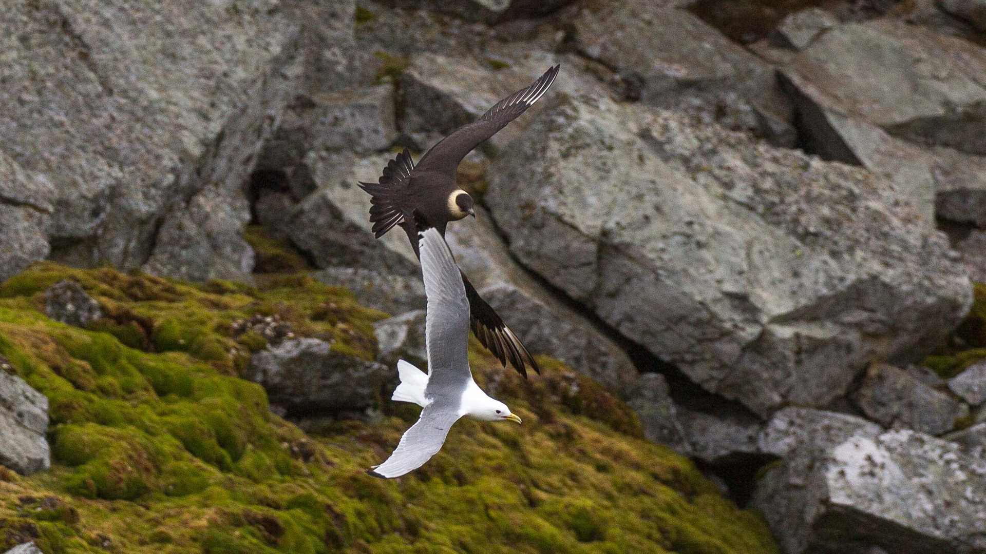 Our first landing of the trip, Camp Millar, showed us the myriad of life that the summer has to offer here. Arctic foxes, nesting dovekies, gulls and kittiwakes, reindeer and skuas, all striving to feed and breed as much as possible before the cold, dark months of winter arrive. Hiking along the slopes as the fog lifted the sense that we have truly arrived in a strange new land starts to permeate our very consciousness.