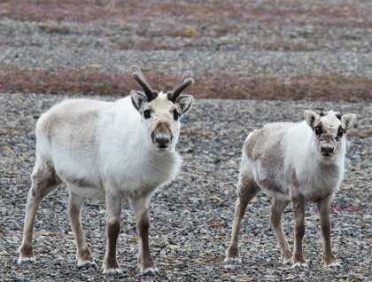 After a good breakfast and a kayak briefing, medium and short hikes or an optional Zodiac cruise were offered. Some guests climbed steep hills onto a plateau with spectacular views while others walked the flat tundra. A little group of Svalbard reindeer seemed curious and showed up very close to some of the hikers. This location has very sparse vegetation, and we noticed reindeer feeding on the purple saxifrages that have just started to bloom, mostly in small patches on moraine material dominated by rounded stones and pebbles. The Svalbard reindeer is a subspecies of the reindeer on mainland Norway and is prone to eat almost anything that has leaves or roots. During the winter the reindeer are confined to feed on dry grasses and lichens, all with a very low nutrient value. However, thanks to a thick layer of fat that is built through intensive grazing during the short Arctic summer, most of the population manages to survive the harsh winter climate. The mortality rate through the winter is sometimes quite high, and we came across remains of reindeer that had found their last resting place on the windswept tundra (see photo). During the hike we spotted a great number of barnacle geese and a few pink-footed geese, some feeding on the flat wetlands while others were nesting on the cliffs. A few of the guests were also fortunate to spot an arctic fox running up and down the slopes hunting for food.