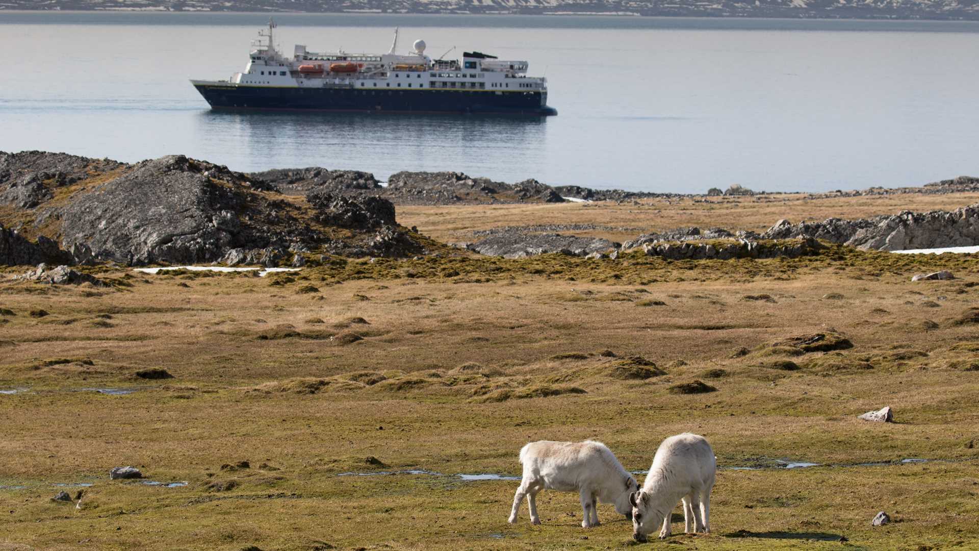The coastline here is also home to Svalbard reindeer and polar bears. We saw plenty of the former but none of the latter. The ground was littered with the antlers shed by the reindeer over many, many years, if not generations. The reindeer still had their winter coats, so on this warm day, they were to be found lying down on the remaining patches of snow to cool down. Everyone was keeping their eyes glued to the scree slopes of the mountainsides in the hope of catching a glimpse of the very elusive Arctic fox. Alas, every panicked flight and cries of the dovekies merely alerted us to the presence of glaucous gulls or Arctic skuas (parasitic jaegers) rather than our quarry.