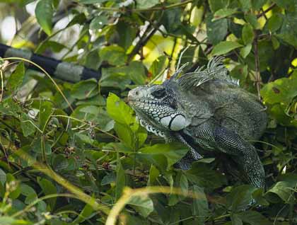 The next portion of the morning activities found us deep inside Belluda Caño. Secropia trees lining the riverside hosted different kinds of small birds, such as white-winged swallows, slate-colored hawks, plombius kites and chestnut-eared aracari. A colorful caiman lizard swimming close to the river edge was our last surprise of the morning.