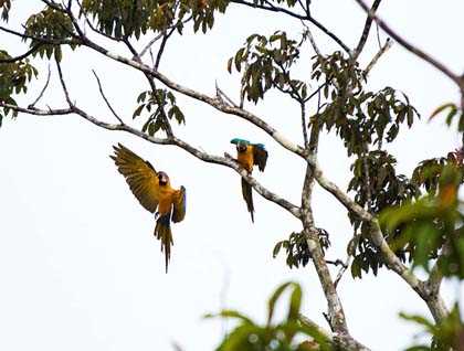 At 6:00 a.m. we boarded the skiffs to explore the shore of the Ucayali River. This area is a vibrant forest that combines different types of trees and a diversity of palms. Among all these living forms we do have many dead trees and dead palms. It is this particular group of dead trees that lure large flocks of birds, especially parrots and wood peckers. Here in the jungle a dead tree is not a lost one, it is rather an opportunity for nesting and also for finding food such as wood insects.