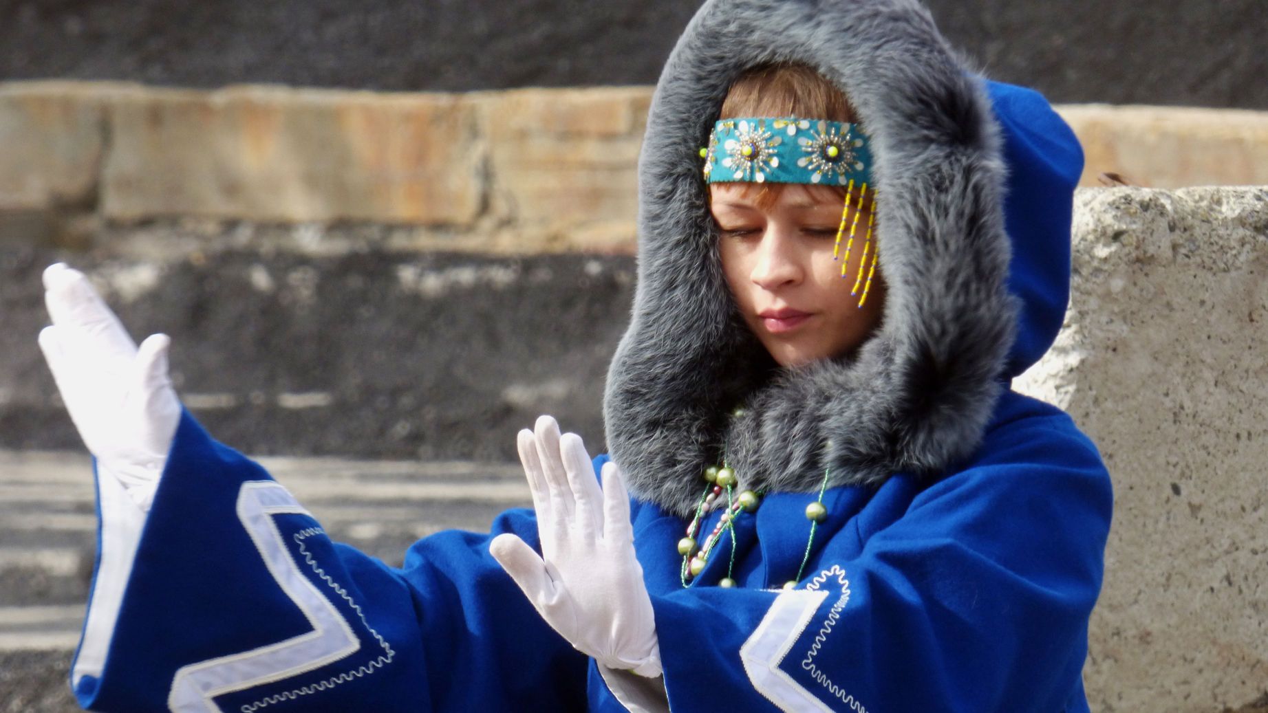 Once our town wanderings were complete, we gathered at the performance center for a mixed cultural experience. Drummers and dancers from native traditions performed walrus and gull in flight dances with the deep resonance of throat singing. Intertwined with the native performances were the joyful and light-hearted Russian dances mostly performed by the children of the town.
