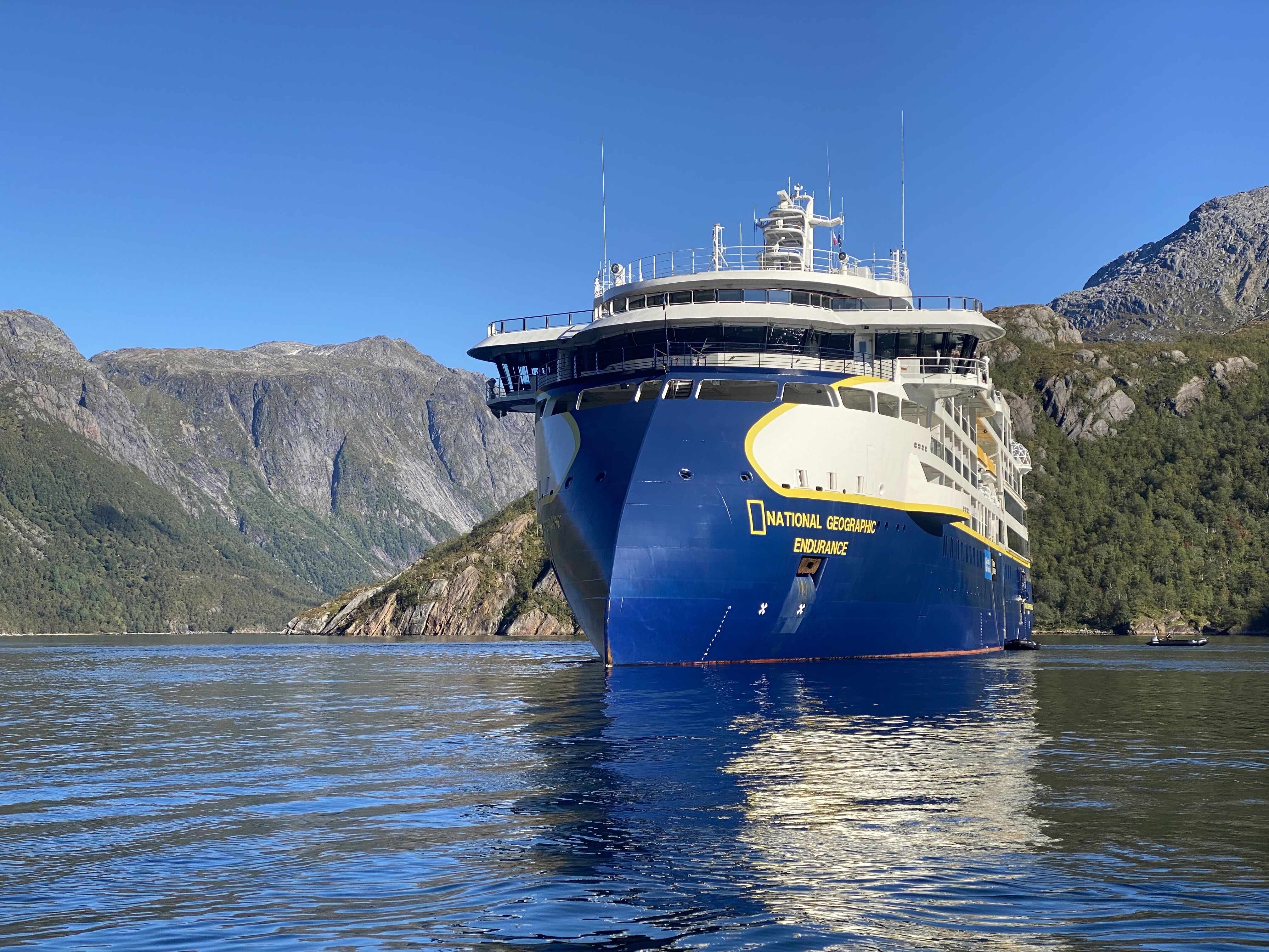 Our exploration of coastal Norway continued today with a stop deep into Tysfjorden, one of the major fjords of Norway. At the far south end is a small settlement of summer homes known as Hellemobotn, translated as “end of the fjord.” Guests joined in a variety of hikes through a boreal forest along a trail that follows a glacier fed stream. A few of the heartiest hikers joined the strenuous hike to the top of the waterfall, while most enjoyed a more leisurely hike to the waterfall’s base. The trail is lined with birch, pine, and juniper trees, mixed with crowberry bushes and mushrooms. Just before dinner, National Geographic Endurance explored Trollfjord, a very short yet very narrow fjord. Entering this fjord gives the bridge team a chance to show off their navigation skills and take advantage of the ship’s incredible maneuverability. A visit to Trollfjord isn’t complete without bringing the ship right up to the edge of the sheer cliff face, sometimes even close enough to pick a leaf from a tree branch!