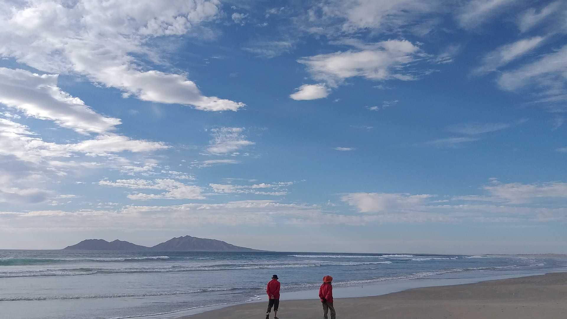 Today we repeated a session of whale watching in the quiet waters of the Magdalena Bay, but a bit earlier. Around 7 a.m. we boarded a big local panga, moving into the Boca de la Soledad, a shallow entrance for the cetaceans located between Magdalena and Santo Domingo islands. There was a light, warm breeze blowing from the northwest, but the conditions were perfect for more whale observations, like a clear atmosphere and a motionless sea. Once at the Boca, we saw the whales moving slowly, almost lazily, with no hurry—the mothers nursing the babies or playing with them; the singles seeking for mates. Our excited guests captured the last mental and photographic images of these magnificent giants, as we would leave soon the area.