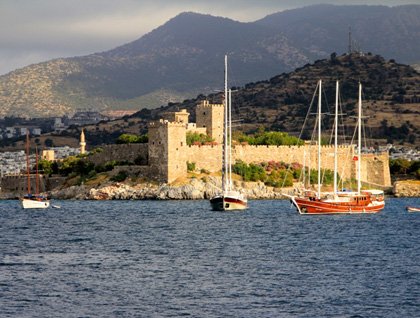 Silhouetted against the grey dawn, eight old windmills stood like forgotten sentinels on the ridge above ancient Halicarnassus (modern Bodrum) as the Sea Cloud inched towards the pier. The bustling port was barely waking up as we left the ship; shopkeepers sweeping their doorways, fishermen spreading their nets to dry on the pier, dogs stretching their limbs on the sand shore, and delivery men darting about on motor bikes in and out between those of us who had chosen to walk to the center of the old town.