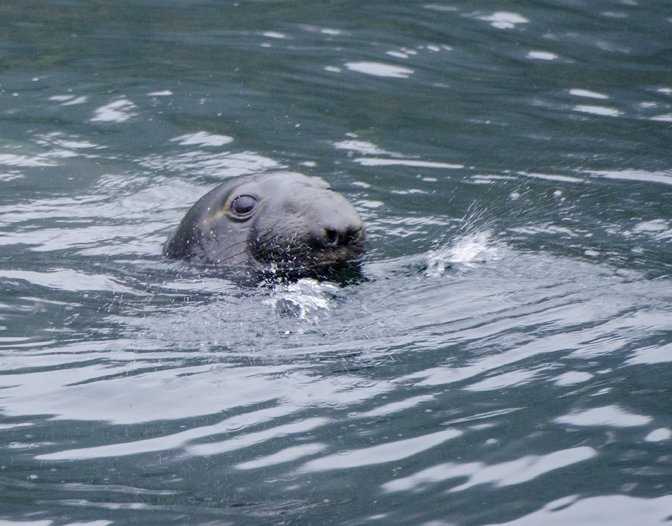 We paused for a few surface-active humpback whales in Graham Reach. We saw breaches, tail throws, and fin slapping. An exciting moment occurred when we spotted an elephant seal bobbing in the water, watching us with big brown eyes as we coasted by.