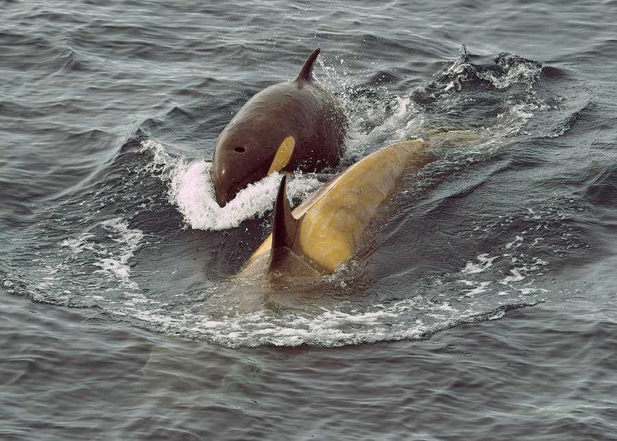 Why are these killer whales so yellowish?  Here, in the cold Antarctic waters they can’t shed skin and soon diatoms will cover them creating this yellowish pattern over their white patches.  In fact the whalers even called the blue whales here in the Antarctic waters ‘sulphur-bellied whales’ for the same reason.