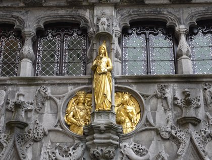 Today we were the happy recipients of their architectural choices as the city is one of the architectural gems of Western Europe. It is difficult to point to one building to praise since the city is so blessed. However, we all marveled at the glorious gothic city hall (Stadhuis) built in 1420, literally covered with statues of the rulers of Flanders and the small but polychrome Basilica of the Holy Blood. A good number of us actually got to see the holy relic. We all boarded the canal boats for a 30-minute ride through this “Venice of the North.” The name of the city actually means “bridge,” a testimony to the numerous canals in the city. Many enjoyed the delights of Belgian pancakes heaped with whipped cream and strawberries.
