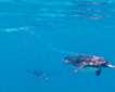 Morning found us anchored off the point called “Los Titeres” (the Puppets). South of the northern tip of Bahia Magdalena, also the northern tip of the island of Magdalena. Some wind moved the flag of the ship, and the sky was gray, threatening more wind. Immediately after breakfast we started our whale watching, in two groups. With a local fisherman (panguero) in each of our boats, we set off to different parts of this northern portion of the lagoon in search of a “friendly” whale, which we was identified somewhat south of our anchored position. Here we approached the animal at a certain distance, and waited for the whale to approach us. This happened, and soon we were all enjoying the fantastic views of a gray whale pretty near our boats. On some occasions the whale approached even more! This was on and off during our time out, when we at last returned to the ship to allow the second group to whale watch! Fantastic!