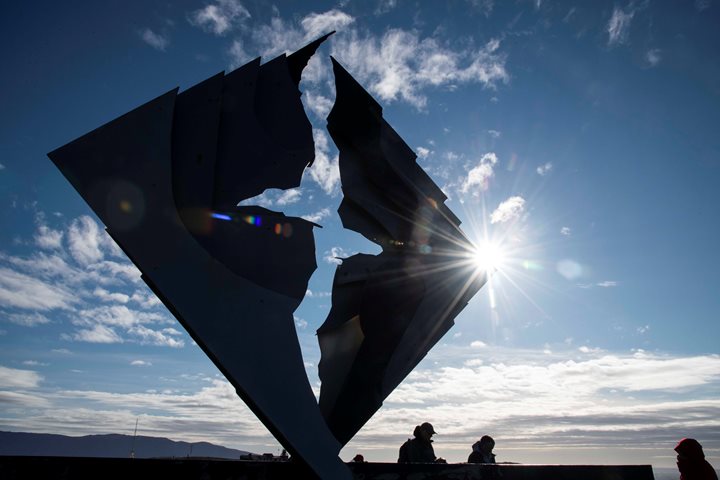 In the early hours of the morning we slipped out of the protection of the Beagle Channel and made our way south to this infamous location off the southern tip of South America. Circumnavigating the island, named by a Dutch captain after his hometown in The Netherlands, we had good views of the Albatross Memorial (honoring the maritime dead) and the lighthouse. By mid-morning a window of opportunity for a landing had presented itself and we were able to land some 130 guests in an exemplary Zodiac operation of the kind for which National Geographic Explorer is celebrated. The lighthouse keeper and his family hosted us graciously and we braved the strong winds atop the island to visit the Albatross Memorial and that to Captain Robert Fitzroy who had preceded us with a landing here in 1830. It was moment to savor with our purser kept busy ensuring our passports received a commemorative stamp.