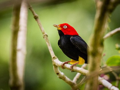 Dock off from Golfito, short navigation ahead, calm blue oceans, and lush green forest with patches of yellow flower trees were the scenery for our morning outing. A wonderful manicured garden here is owned by Ron and Trudy Mac Allister, who have lived in Costa Rica for over 35 years after they left the USA. The garden was not just a treat for plant lovers, but also anyone who had a crush on tropical birds had their infatuation fulfilled. As the expedition landing crafts arrived at the garden a naturalist pointed out a tree where six black mandible toucans were perched, swaying their heads from side to side as they sang loudly. As the attention was on these birds, a couple of scarlet macaws, another quintessential neotropical bird, flew by to perch on a nearby palm were they were more photographed than any other flower in the garden. Macaws are just large parrots which play an important role of seed predators by feeding upon the endosperm of seed, or the inside chew center of fruits. On the other hand, the small colorful birds like manakins are very important seed dispersers.