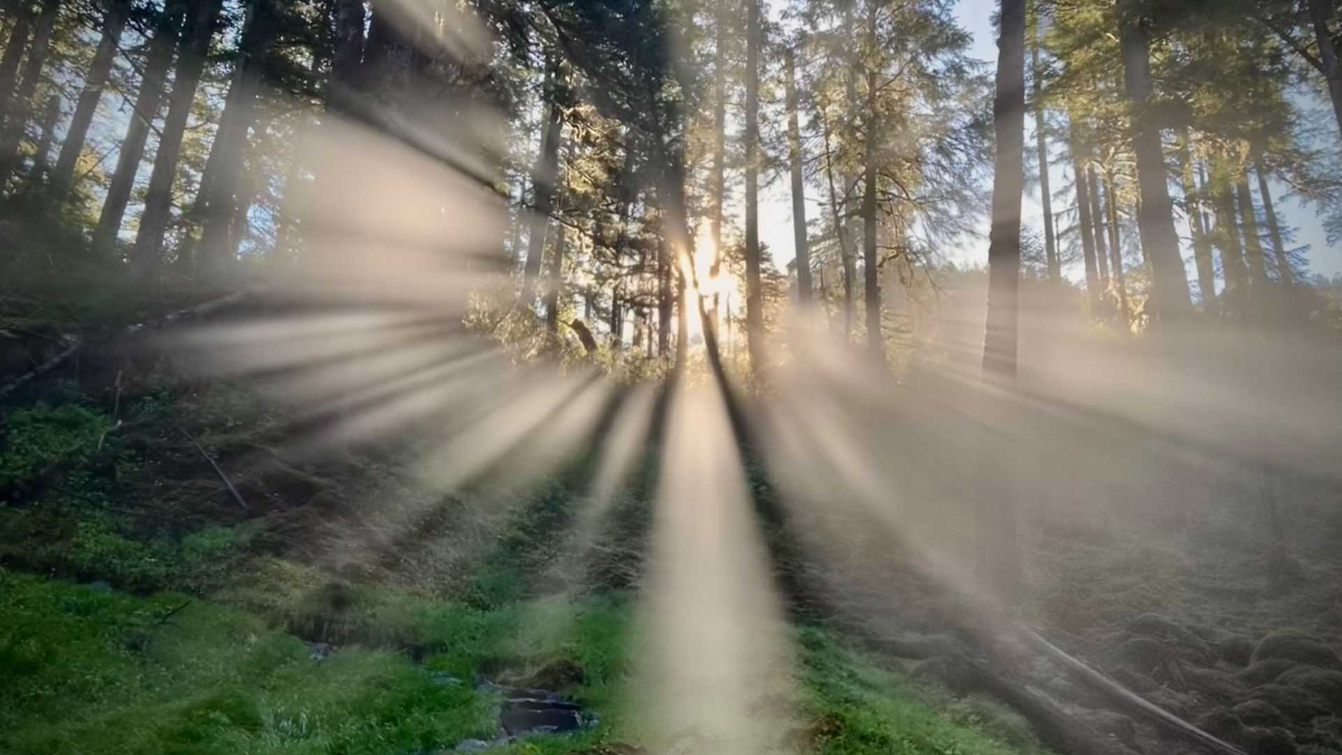 After clearing the Zodiac rails, it was time to hit the hiking trails into the woody wonderland bordering a roaring Cascade Creek. The creek’s powerful flow is ever at risk of drowning out the enthusiastic and ecological exclamations of our intrepid naturalists. Fortunately, our sheer delight at witnessing towering trees and blossoming dogwood amidst a lush carpet of spring-loaded understory fended off the creek’s raucous ramble. We ventured onward and upward to catch the sunrise through one of the most picturesque canopies the “Salmon Forest” has to offer.