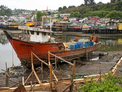 The visit to Castro includes an opportunity to see the Palofitos, as the houses built on stilts are known here. This form of construction mostly made of wood, is a neat way in which the fishing communities could get around the large tides in this region. Many of the houses are painted in bright blues, yellows, and reds.