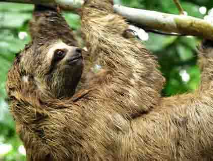 The highlight of the morning was a baby sloth we found climbing a small branch so close to us. We stayed few minutes observing the very slow movements this creature makes, and the very gracious way it climbs the trees. Then we came back to our ship and moved not far away, motoring 3 hours to get Yanayacu River. “Yanayacu” means black water, and from the shore you clearly can see the merging of two rivers: the brown muddy water alongwith the black water coming from the highlands bringing vast amount of nutrients and minerals from volcanoes. This is the favorite spot for pink and great dolphins to feed on fish - we saw plenty of them.