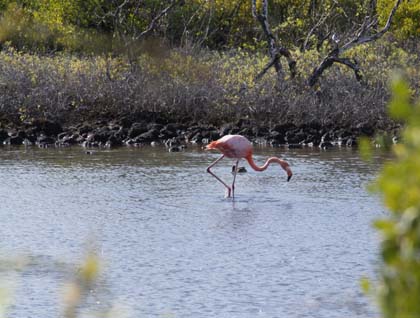 This morning explorers on board the National Geographic Endeavour are ready to disembark at the landing site of the island of Santa Cruz known as Cerro Dragon. After breakfast, we load the Zodiacs and disembark on the rocks to begin the visit. We walk along the coast and then head inland to a brackish water lagoon, where we find pink flamingos and many other lagoon birds. We are lucky enough to get close to a Galapagos land iguana before we continue to the area known as a highlight of this visitor site, a land iguana nesting ground.