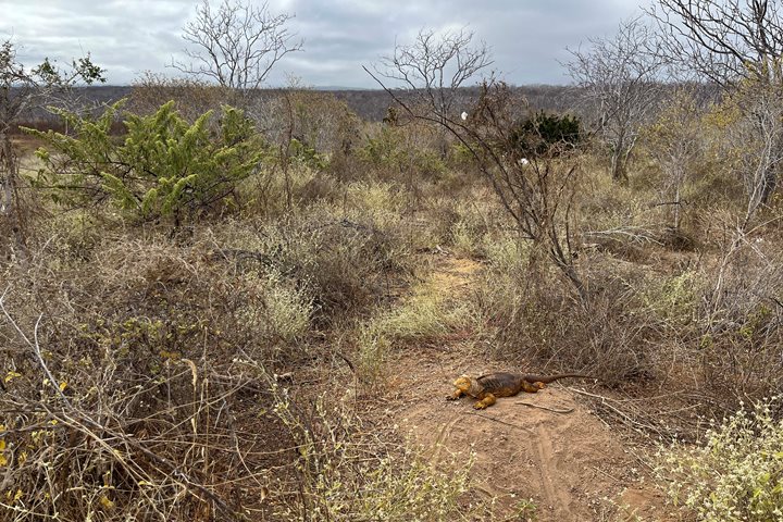 After breakfast, early in the morning, avoiding the heat of the day, we went for a hike looking for these so-called “dragon-like” iguanas. We were successful for we encountered several colorful individuals that were observed contentedly underneath prickly pear cacti or dozing in the equatorial sun that little by little showed up. Our guests were very surprised to see the very arid scenery that dominated this area as well. This dry landscape was in fact very different from the lush vegetation we observed yesterday, even though we were on the same island and at about the same altitude while in the littoral zone. In Galápagos, this natural phenomenon called rain shadow occurs because of the strong southwestern winds that affect the southern slopes of most of the islands of the archipelago.