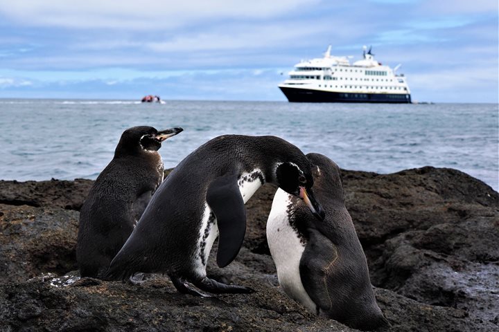 At the end of this great day we went to the ship’s bow for a wine tasting on the house while circumnavigating Daphne Major. This small island is of great scientific interest for it was in this place where a famous couple of scientists Peter and Rosemary Grant have been studying Darwin finches most of their lives. They discovered, in a nutshell, that the size of beaks of these iconic birds can change in short periods of time adapting to drastic weather and availability of food on the island. This revolutionary study showed that evolution can take place not only in millions of years but also in extremely short time periods. A classical already science divulgation book by Jonathan Wiener entitled “The Beak of the Finch” beautifully narrates this extraordinary discovery and the life of the Grants on Daphne Major.