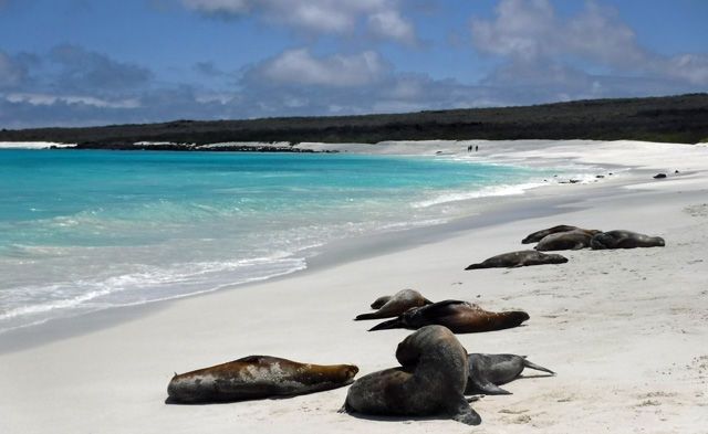 We woke up to super calm waters off the northern coastline of Floreana Island. Perfect conditions for a bit of kayaking among the offshore islets near Post Office Bay! Brown pelicans, egrets, green sea turtles, and red, black, and white mangroves…a peaceful environment for an hour or so before breakfast. Some guests went straight to the beach to walk a few yards through saltbushes and found themselves facing the famous “barrel” of Post Office Bay. It’s been over a century since the barrel was first placed here for use by whalers to exchange correspondence and carry back letters of business, or perhaps letters to loved ones. Today, postcards fill the barrel, but the turnover is fast. Each day, some of the postcards are taken for delivery while others are left behind in hopes that someone will continue the tradition and hand-deliver them in the weeks to come. Between breakfast and lunch, we played in or on the water around Champion Islet, just to the northeast of Floreana Island. We didn’t make a landing but explored by Zodiac, including a birdwatching circumnavigation followed by deep-water snorkeling in incredible waters with parrotfish, angelfish, pufferfish, damselfish…all kinds of fish! Sea lions buzzed by, desperate to draw attention and get a reaction out of us, which they did. Squeals and shrieks were heard. After an instructional briefing on iPhone photography and a presentation on Charles Darwin in the afternoon, we went ashore on the main island of Floreana. There has been quite a drought this year and not much rain the previous year either. The land was dry, the vegetation was brittle, and dead leaves were everywhere. But all that is fine for the native and endemic species; after all, they’ve been through this before, over the millennia, and survived. The stress is on the introduced species who depend on higher amounts of freshwater for survival. While their defenses are down and populations are stressed, now is the time to really push for programs to eradicate introduced species. Floreana Island is ready for restoration. The National Park and collaborating NGOs are preparing Floreana to receive native species that were once thought doomed for extinction. Giant tortoises, Floreana mockingbirds, and racer snakes may yet survive and prosper with the help of these organizations. We spent the afternoon following an easy trail from a dark-colored beach of mineral origin and over the isthmus to a white, organic beach where green sea turtles were riding the breakers offshore. The turtles are not quite ready to come ashore and lay eggs, as temperatures are still too low for another month or so. But a great blue heron and frigatebird were checking out the scene, just in case someone tried for an early nesting. It will be a couple months before hatchlings try to race to the ocean in the dark of night. We returned to our base of operations as the sun set low on the horizon. National Geographic Islander II was waiting for us with hot water and the comforts of home.