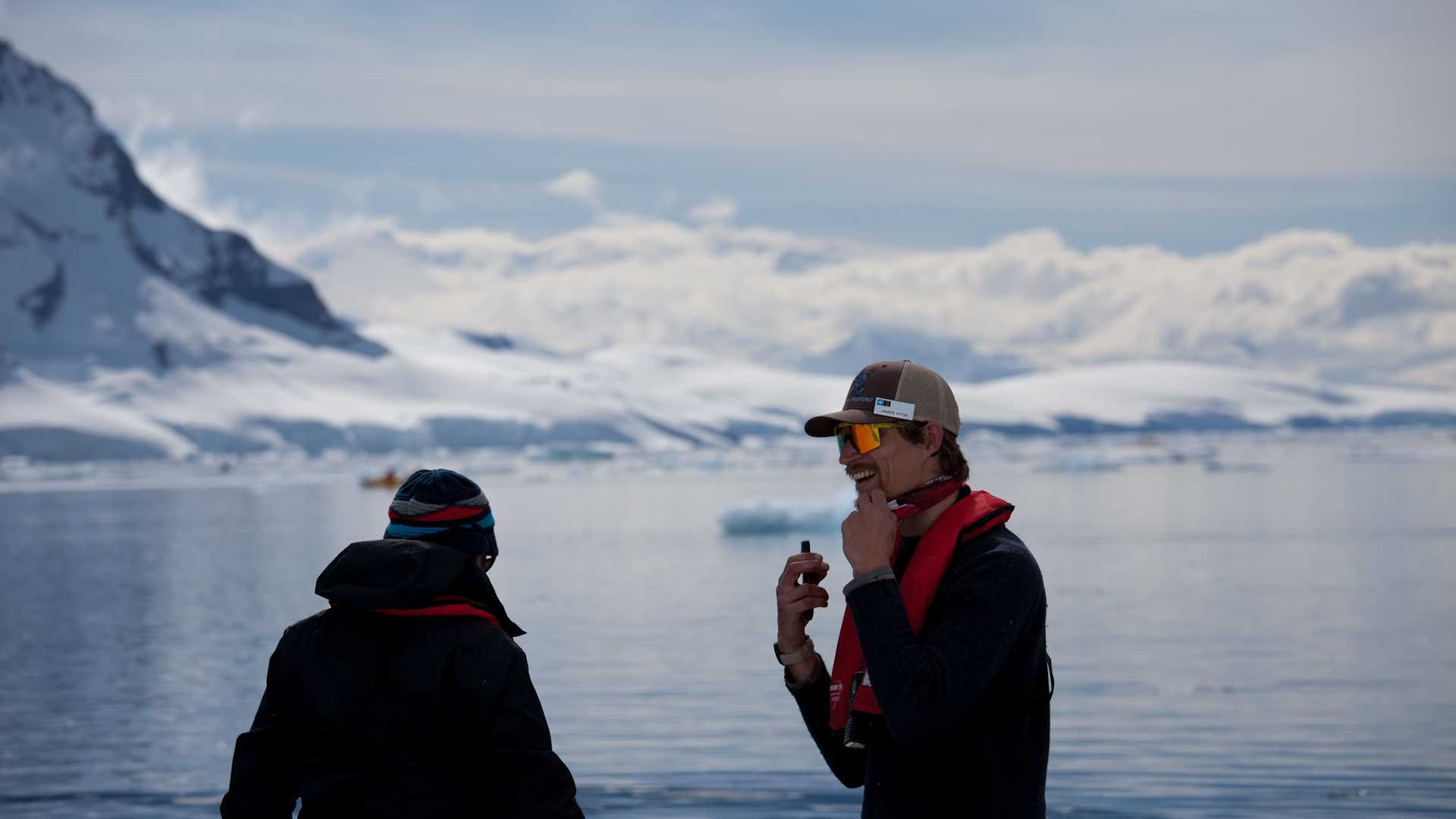 Once all watercraft returned to the National Geographic Orion, our Expedition Leader Doug Gould made the final decision to offer the polar plunge! The polar plunge is a long-time tradition among high latitude Lindblad Expeditions trips, where guests are invited to take a quick and exhilarating dip into the Southern Ocean. Full immersion in 28-degree water is a special and unforgettable experience. Ten seconds from toe touch to wrapping a towel around your confused body will teach a person more about instinct than most events in the human experience.