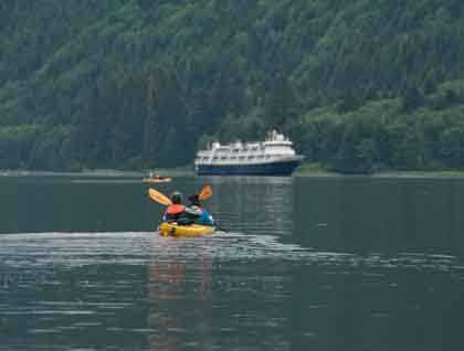 Our afternoon took us to Saook Bay, a picturesque area of Baranof Island. Before reaching the head of the bay the National Geographic Sea Bird stopped to unload kayaks and a group of intrepid travelers who would kayak the last two miles as the Sea Bird sailed ahead to anchor at the end of the bay. Once our kayaking was through, we all set off on an exploration of the grassy meadows that lined a salmon stream that meandered through the fields. We hiked along the stream and watched as pink salmon swam the last length of their journey upstream. I wonder if they know what lay ahead for them on this final journey. Their whole lives were filled with adventure from the moment they hatched from their eggs, until they heard the ancient voice calling them home to the place of their origin. Here they will make the ultimate sacrifice in order to keep their species alive.