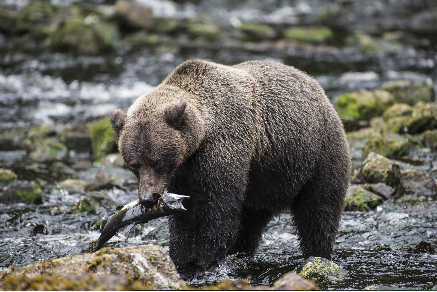 While the bears were enjoying their late morning snack, the undersea specialist, along with her dive team, explored the underwater world in the bay. With the nearby freshwater stream mixing with the sea, the differences in water density created a blurry layer known as a halocline. Once the divers dropped below the halocline, they found a beautiful rock wall covered with thousands of bright orange plumose anemones- what a sight! Their favorite part of the dive was finding the giant pacific octopus. Fun fact: octopuses use copper instead of iron (like vertebrates) to transport blood throughout their body; this gives them blue blood instead of red! Being able to share underwater video footage with those who prefer to stay on land is a great and unique tool of discovery.