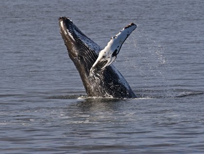 Twelve hours after departing Sitka, the expedition leader’s morning wake-up call was a bit early, because a humpback whale was breaching near the ship! The whale raised its tail flukes, dove, and seconds later burst out of the water, landing with a huge splash. This sequence was repeated again…and again…and again. The setting was beautiful: tall, jagged mountains, spruce-covered hills touching the shore, and a cascading waterfall. But the boisterous young whale kept our attention. It was an absolutely wonderful beginning to our voyage.