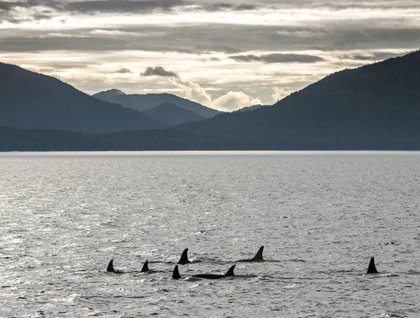 Some mornings start earlier than others. Often the reason for an early start is less than desirable. When your expedition leader wakes you up at 6 a.m. with a sentence containing the word “Orca,” however, there are few things that could keep me down. That is exactly what happened on our first full day in Southeast Alaska as we entered a large, deep body of water known as Chatham Strait. For the next three hours killer whale blows and their large, sleek, black bodies could be seen in virtually every direction. Sometimes small satellite pods came within 100 meters of our ship. Other times the horizon was dotted with low, bushy blows and the telltale triangular shaped dorsal fin of our planets largest dolphin. An occasional sighting of black-tailed deer along the shore and a small group of Dall’s porpoise punctuated a morning full of incredible wildlife sightings that would make Jacques Cousteau jealous.