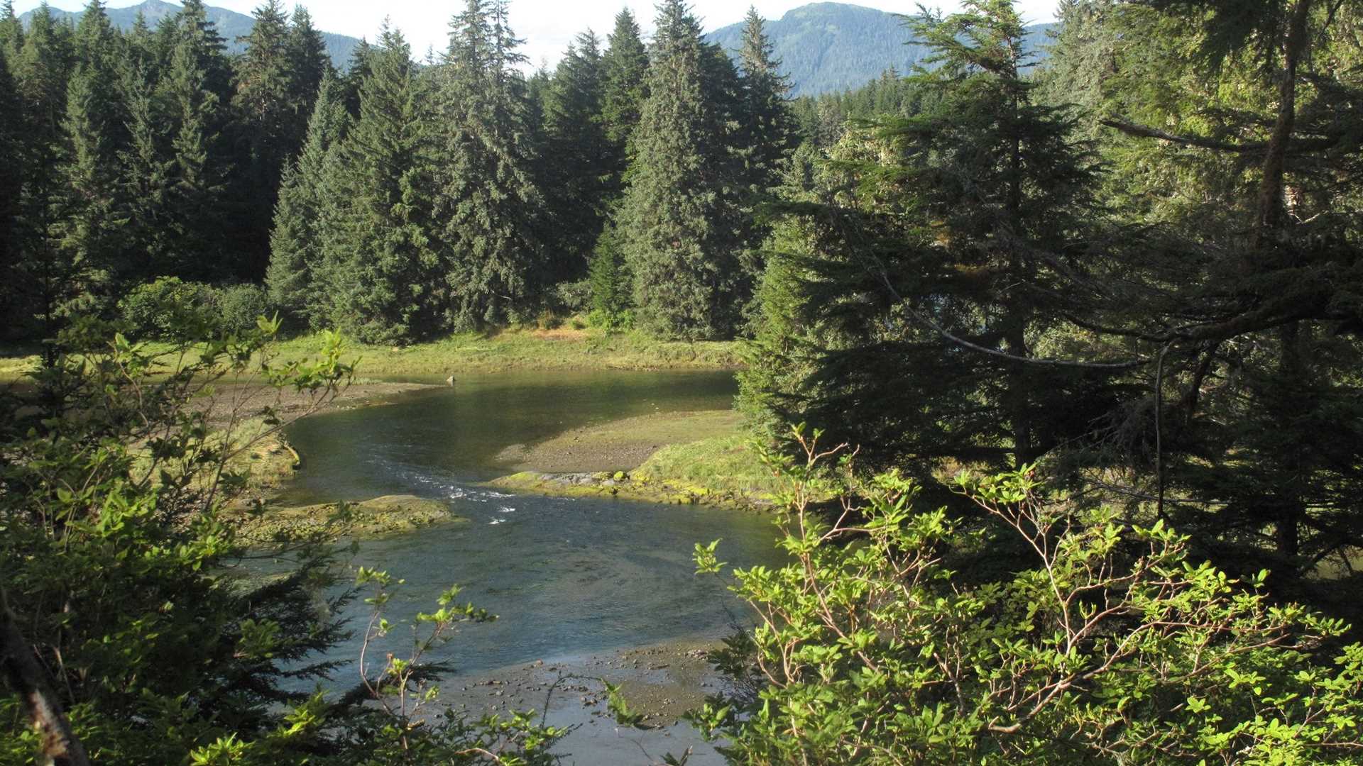After departing from the humpbacks, we journeyed across Chatham Strait to Lake Eva. Our afternoon location provided opportunities to kayak and hike. The kayakers paddled up to the lagoon leading up to Lake Eva and observed harbor seals searching for fish trying to make it upstream. The hikers followed the wooded path along the stream and to the lake. There was plenty of fresh berry-filled bear scat along the trail, and chum salmon were observed in the stream, waiting for the tides to change in their favor.
