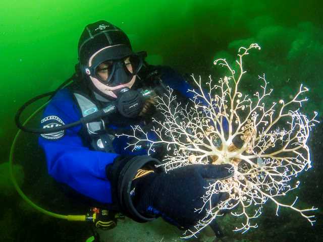 While everyone on board enjoyed the great show of humpback whales, Emily Newton and I went SCUBA diving at the entrance of Warm Spring Bay, on the eastern side of Baranof Island. We had a great dive and managed to bring back underwater video of numerous interesting marine creatures, including both short and giant plumose anemones, assorted sea stars and my favorite, a basket star.
