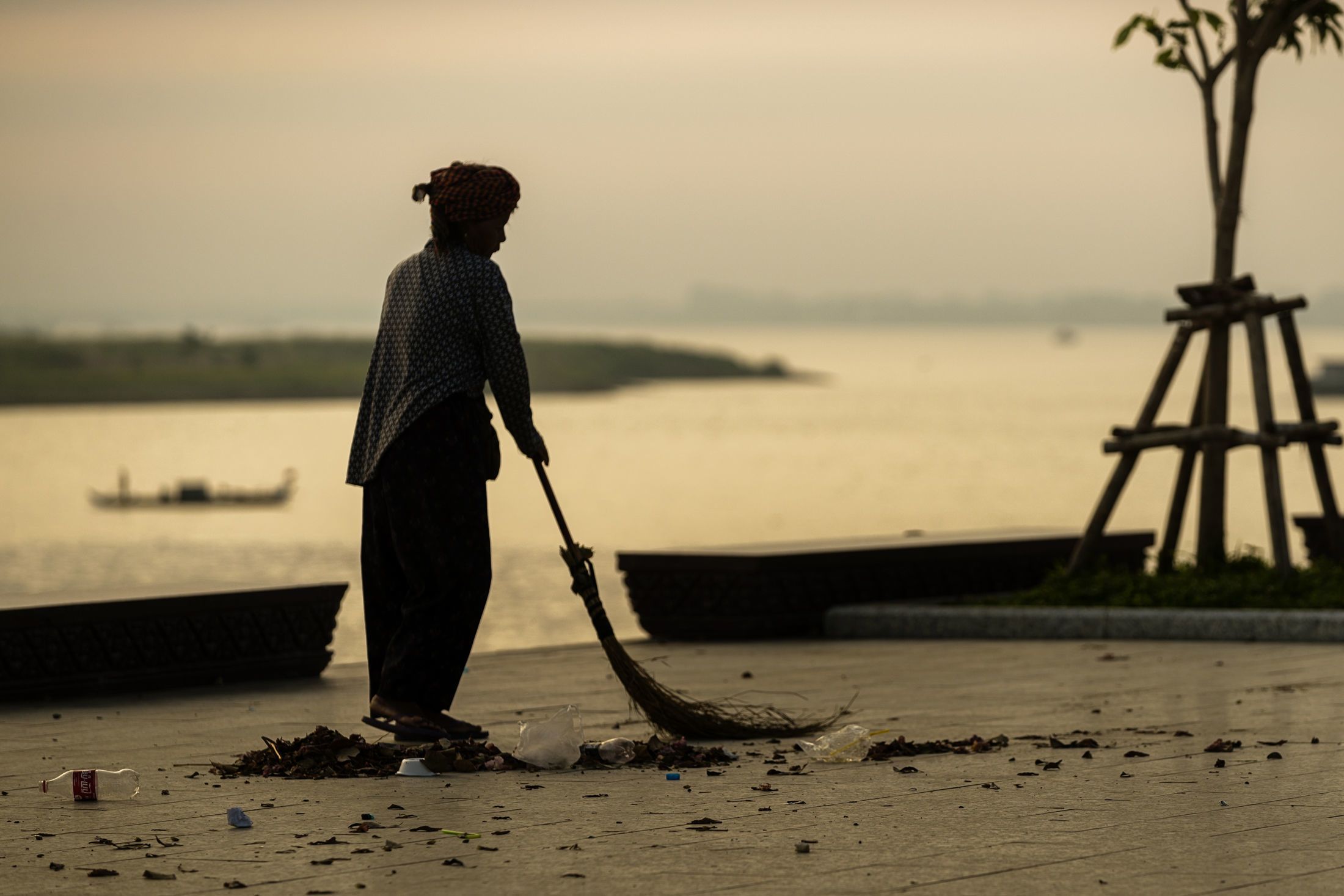 On our final full day on board the riverboat Jahan , we cruised further south on the Mekong where we could see changes in the number of other boats as general river traffic increased. The river here was also tidal and we could see mangroves start to appear in places along the banks. After breakfast we embarked onto local longboats for our transfer to the nearby island of Binh Thanh. One of many islands within the Mekong Delta which is criss-crossed by many canals and rivers. Along the way to the island we passed many small fish farms that are directly within the river, these rafts of floating houses with arrayed ponds raise tilapia and basa (a type of catfish). All along the narrow waterways, we also passed large floating mats of water hyacinth forming dense impenetrable barriers in places. On arrival at our dock our longboat paused to make way for the local ferry transporting a number of locals on motorcycles across to the mainland for their early morning commute to work. Our visit to this small community involved a stroll through the streets to a local temple that also serves as a local community centre. We had the opportunity to meet with one of the elders and understand how Vietnam has grown in recent decades and how they embrace peace and welcome American tourism to their country. We also had the opportunity to see how woven mats were weaved and how dried water hyacinth can be used to weave baskets. In the afternoon we visited another village via longboat to see how puffed rice, sugar palm treats, and rice wine were created. In the evening on board Jahan , over a farewell cocktail party we shared our appreciation to the wonderful crew and later enjoyed the voyage slideshow in the lounge.