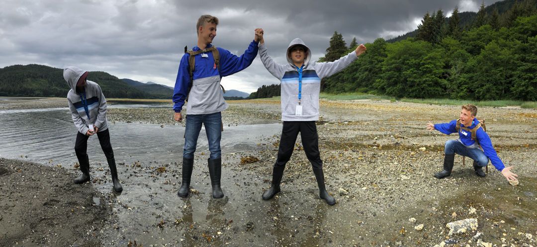 We reached Sitkoh Bay’s visitor site during low tide, which allowed for a comfortable and safe wet landing. Guests were offered an active hike or more leisurely walk through the Alaskan forest. We identified majestic trees of different kinds such as Sitka spruce, western hemlock and red alder. Banana slugs of different colors were also our companions along the way. As an added treat we had a taste of wild salmonberry! Afterward we walked the shore and put what we had learned during our onboard photography session to practice.