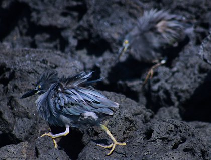 This time we anchored off the coast of Santiago Island. The waves were crashing onto the rocky cliffs of Chinese Hat (a parasitic cone off Santiago). With its conical shape and eroded remains of a tuff cone, this island shows the volcanism of the archipelago as a snapshot taken during prehistoric times. The coast was created by a black lava flow created by an eruption from the 1800s. We decided to get ready and deployed our Zodiacs and begin the adventure to explore a pristine area where life on land struggles to establish itself.
