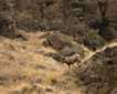 But luck was with us as the blue sky broke through and sun soaked the grassy cliffs surrounding us.  Along our way towards the Salmon River, Snake River confluence, we saw walls of columnar basalt that looked like massive, dark drinking straws piled high. Ancient volcanic eruptions placed layer upon layer of basalt onto this land which cooled into these tremendous sculptures of twisted and towering columns. Into a few of these cliffs were carved petroglyphs representing animals and people. Wild turkeys dined on the shoreline from a limited menu of grass. These large birds took to flight over our boat, barely clearing the antennae. Bald eagles soared overhead or perched in trees gazing into the river water for a sign of movement, which would indicate fish. Bighorn sheep watched us go by and seemed to stop for us to get good photos of them. A pair of coyote scampered like pups chasing each other around a bush in a game of “Catch Me if You Can”, which we all have played at some time in our lives. Fishermen in small skiffs dotted the river, some of them showing us their prize catch of the day. The waters sparkled in the morning light. We traversed rapids with ease, in these jet boats with drafts of only eight inches! Rafting groups slid by accompanied by white water kayakers. It was a fine day on the Snake River.