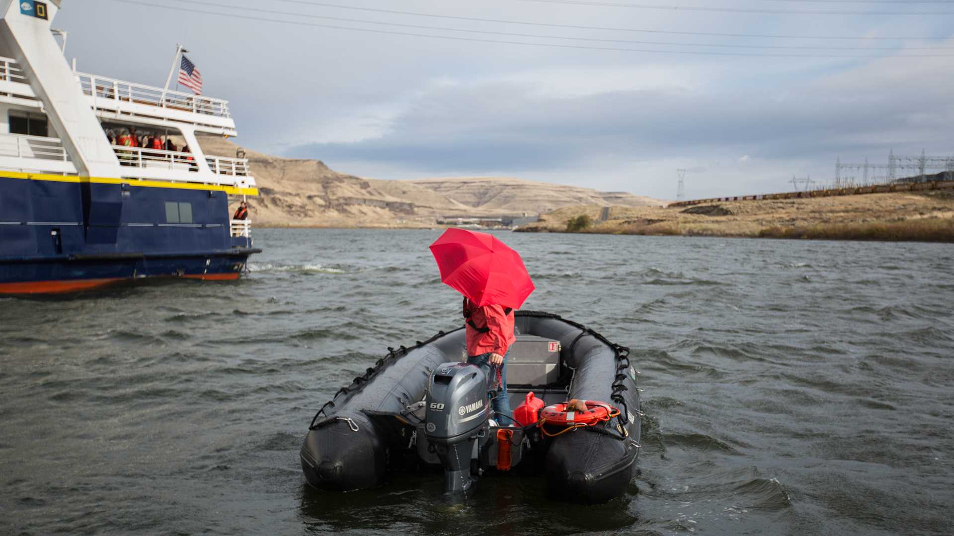 We cruised all morning and turned from the Columbia onto the Snake River somewhere south of Pasco, Washington. Ice Harbor was our first of four Snake River dams. Historian Harry Fritz lectured in the morning on “The Truth About Lewis and Clark, Part III”. He returned the expedition from the Pacific Coast to St. Louis in 35 captivating minutes. Dam authorities allowed us to transit the Lower Monumental Dam (LoMo) in expedition landing crafts. Then it was lunch time, aboard the National Geographic Sea Bird.