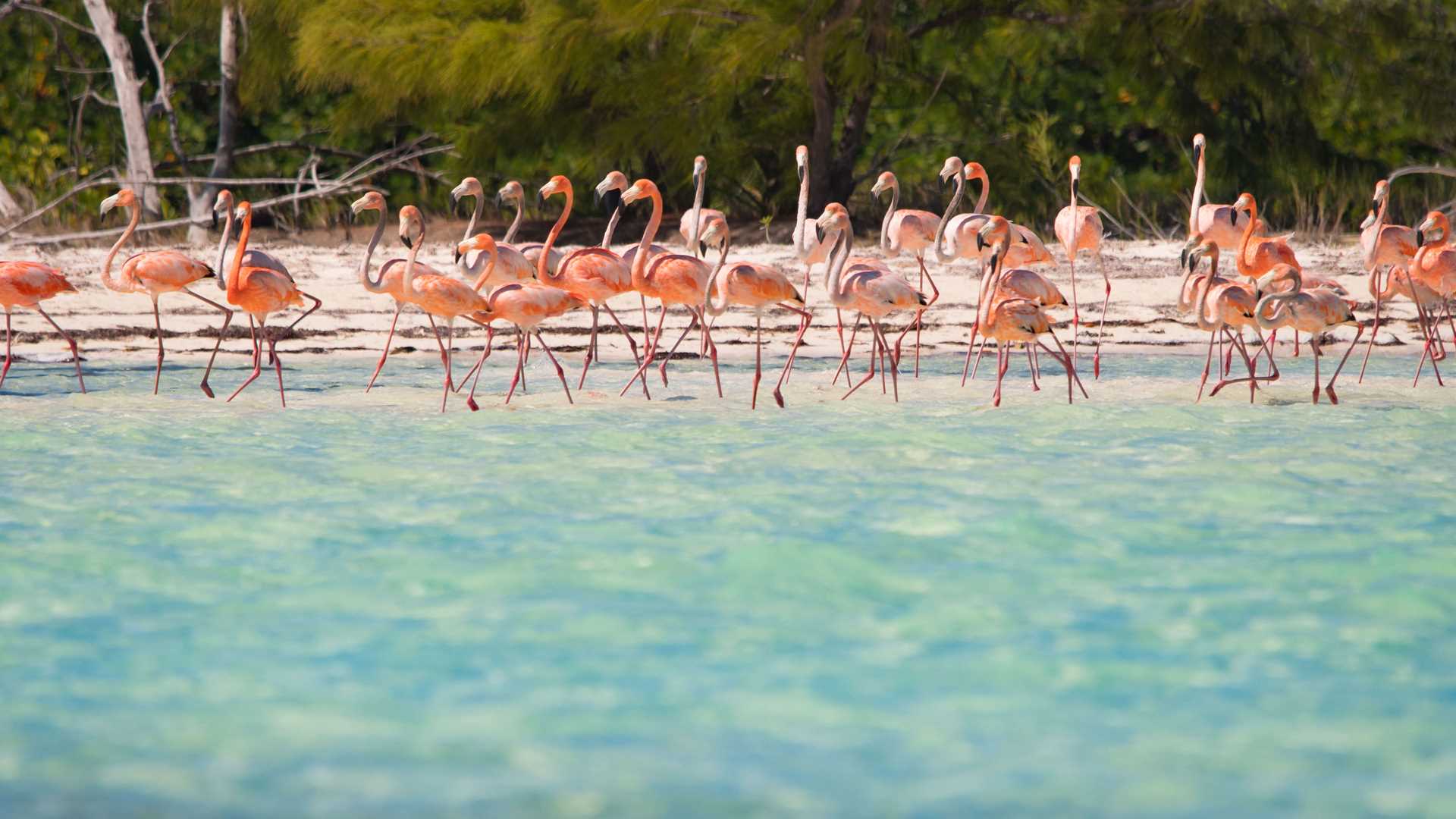 After a long, rocky crossing from Exuma to Crooked Island, we dropped our anchor off the southern coast and got ready to embark on this new adventure. For our first adventure, we set out on Zodiacs to explore Long Cay and get our first look at these beautiful islands. We were also looking for a very special bird, the West Indian flamingo. The flamingo is the national bird of the Bahamas, and they are reliably seen only on the southern islands of the Bahamas. We had pretty good knowledge and a record of a small flock that frequents the eastern side of Long Cay.