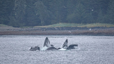We were woke slightly earlier than planned this morning but could tell by the excitement in the voice of our expedition leader Cindy Manning that it was something worth getting up for. A group between eight to ten humpback whales were bubble-net feeding right off our bow! After watching the whales go through several rounds of bursting through the sea surface, it was time for both them, and us, to make our way to enjoy the rest of our day. For us, it was seeking shelter from an approaching storm. For the whales, who knows where, who knows when? But we hope we’ll meet again some sunny day.