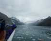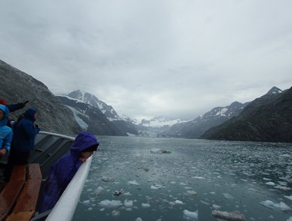 Misty morning today as National Geographic Sea Lion cruised Chatham Strait looking for wildlife. The fog created a soft blanket on the horizon with sun occasionally breaking through the low-lying clouds. Near the Native American village, Angoon, four humpback whales were spotted feeding near the surface. We watched for a while until the whales decided to go on their way and we continued down Chatham Strait. On our way, Marca Babcock gave a talk about Pacific salmon in preparation for our visit to Lake Eva this afternoon.