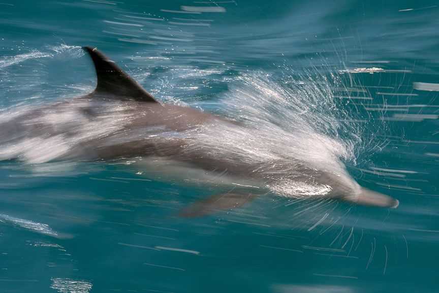 The crepuscular rays broke through the clouds this morning gleaming off the glassywaters of the Sea of Cortez at sunrise and the day continued to get even betteras we cruised north. Our expedition leader and Captain made the collective decision to take advantage of a smooth weather window to cruise to our furthest northern destination for this trip and we encounter some of the iconic marine life throughout the day. Our first close encounter was a few blue whales; the largest living thing to live on earth. In between several presentation and necessary briefings, we also enjoyed mobula rays swimming next to the ship and jumping out of the water. Soon afterlunch we were treated to a mega-pod of long-beaked common dolphins chasing fish and leaping out of the water. As wecontinued north, a few bottlenose dolphins hitched a ride on our ship’s wake and performed several acrobatic leaps. The day continued with several species of sea birds feeding around the ship and we capped off this incredible day with a spectacular sunset on deck. Onward north for more.