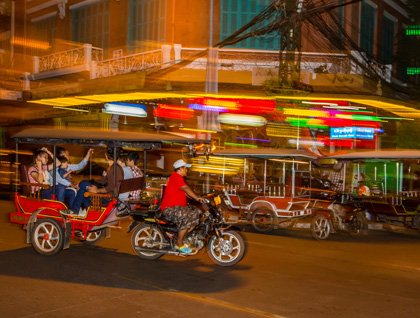 We remained docked in Phnom Penh overnight. In the morning a few brave souls accompanied our photographic instructor, Michael Nolan, for a morning stroll to the nearby market, with all returning by 7:30 for our cast off at 8:00 am. The next several hours were spent leisurely cruising on the Tonle Sap River, passing several picturesque villages and fish farms.