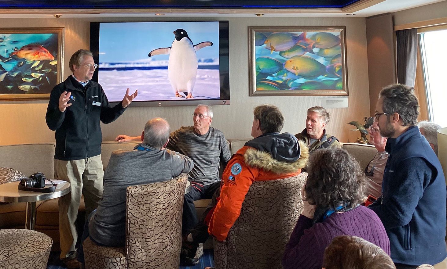 During sunrise, National Geographic Quest sailed to drop anchor between Muneco Islet and Junquillal Wildlife Refuge. On our way, the humpback whales showed up again and put on a show. At this time of the year, individuals from the Northern Hemisphere head down to give birth to their young. After breakfast, some guests headed to Muneco Islet for our first snorkeling outing. The backside of the islet gave us a protected cove. The beautiful geological formation bears witness to the magnificent uplifting of this unique region. Guests observed sea stars, damselfish, surgeonfish, bicolor parrotfish, and cornetfish. The experience was enhanced by the wonderful calls of the whales. What a beautiful way to snorkel! As a second activity, we enjoyed downtime at the wildlife refuge. We walked on a secluded beach where we spotted birds, such as white-throated magpie-jays and crested caracaras. Orange-fronted parakeets appeared to show off their colorful plumage. In the afternoon, photo instructor Jose Calvo gave us a great lecture that included useful photography tips. We enjoyed different options to explore Junquillal Bay Refuge. Some guests worked out their upper bodies by paddling kayaks while exploring mangroves, and others observed the scenery on Zodiac cruises. We all observed species like ringed and green kingfishers, little blue herons, spotted sandpipers, whimbrels, white ibises, and more. We talked about the habits and behaviors of the different species. The impressive root system of the mangroves welcomed us, and we were transported to a place with scenery that looked like it came from a story. We learned about this unique system and the challenges it faces to adapt and survive in high salinity environments. Other guests chose hikes through the tropical dry forest and enjoyed amazing views of the spectacular Peninsula de Santa Elena. Recap and dinner were followed by a wonderful presentation by the Director of Guanacaste Conservation Area, a UNESCO World heritage site. The speaker put in perspective the high importance of this protected part of Costa Rica, including its contributions to the world.