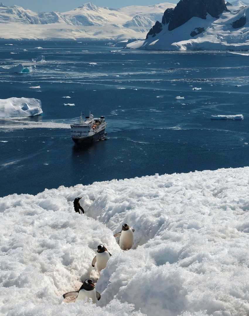 As the solstice nears, the sun is up for nearly 22 hours, and the days seem to blend together. There is barely any darkness, and we don’t want to miss any of Antarctica’s beauty—glaciers, steep mountains, deep snow, high rock cliffs, and icebergs. We can sleep when we leave this magical place.