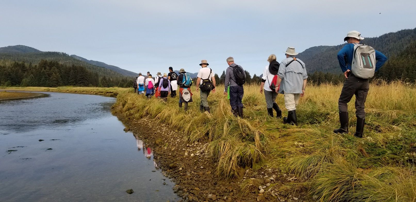 Tracy Arm Wilderness encompasses two large fjords known as arms. Today, we had the pleasure of exploring Endicott Arm. Icebergs, cascading water, wildlife, scenery, and a glacier made our adventures exquisite. The Dawes Glacier is three quarters of a mile wide at its face and 250 feet tall from the water’s edge. Our expedition vessels launched early this morning for a chance to travel through the floating ice and view the magnificent glacial face. Evidence of glaciation littered the fjord and increased the closer we journeyed to the face. Several calving events occurred throughout the morning, ensuring every guest had a view of the falling ice. Harbor seal mothers and their pups looked at us curiously as we kept a safe distance from the towers of ice. After our morning expedition landing craft cruises, we ventured out of Endicott Arm and explored Holkham Bay. Numerous birds and whales accompanied us for the remainder of our time in the Tracy Arm region.