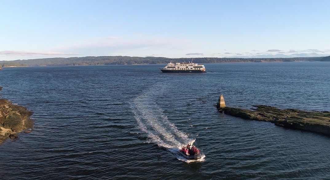 The sun was shining from the break of dawn, and blue skies graced us throughout the day here in British Colombia. Our morning started at Pirates Cove on De Courcy Island where we offered hikes and Zodiac cruises. Pirates Cove is a small protected marine park, and provides a wide variety of plant life and bird life. We had a beautiful morning exploring this island with its many offerings, both on foot and on our Zodiacs.