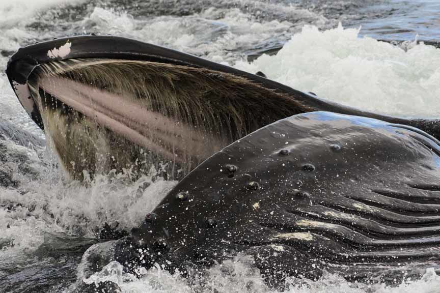 We woke to pretty clouds above the tree-covered hills as we sailed into Idaho Inlet, seeking wildlife. After breakfast, we landed at Fox Creek and hiked into a small waterfall along a salmon stream, through stately spruce and hemlock trees. The temperature was cool in the forest and black-capped chickadees sang to us as we walked along. Kayakers paddled in a beautiful cove with mirror-like waters, and other guests headed out on a cruise along the shoreline to search for wildlife and birds. It was a stunning morning. We sailed to the Inian Islands anchorage during lunch, and soon we were launching our expedition landing crafts to explore. The waters of the Inian Islands and Cross Sound are rich with nutrients due to the mix of upwelling currents and flooding tides, providing a wonderful food source for marine wildlife and seabirds. On this wonderful day, we saw Steller sea lions, sea otters, many humpback whales, and a minke whale. Late in the afternoon, we sailed over near Elfin Cove and went ashore to explore this picturesque and quaint fishing village on foot, making friends with the local dogs and talking with fisherman as we walked along the boardwalks of town.