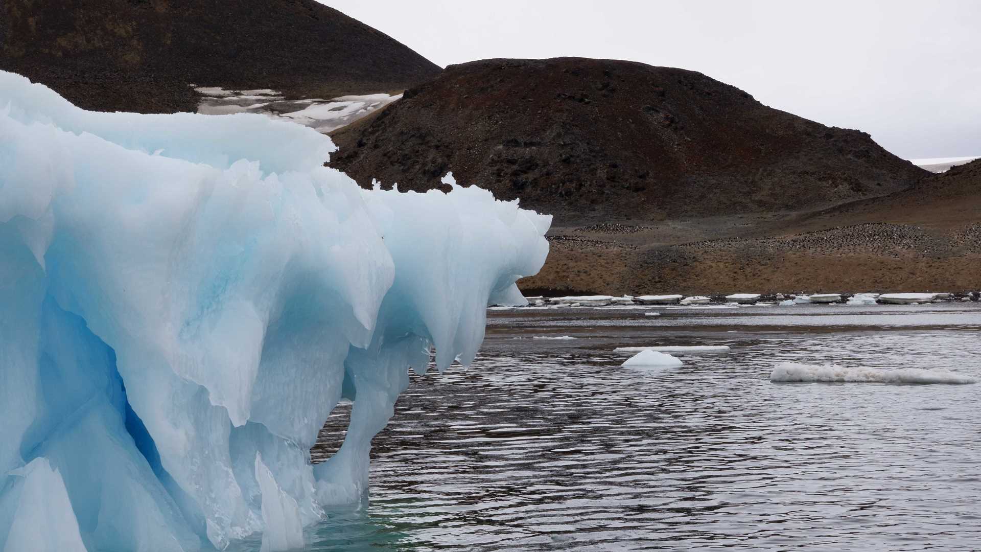 After our visit to Devil Island, our plan was to explore this fabled body of water and seek out wildlife, take in the sights of sea and glacial ice, and hope for time and conditions suitable enough for an ice walk on the remaining fast ice in this area. There was also another mission that we hoped to fulfill today, with the participation of a thousand schoolchildren throughout the United States and Canada. Our undersea specialist, Alyssa Adler, has been working with National Geographic in many ways, and one of them is coordinating and taking part in a live broadcast from Antarctica. She brought a remote satellite broadcast unit to provide a direct and live interface to not only share some of Antarctica’s story, but in real time reach out to schoolchildren and provide a platform for them to engage us with questions in the field. The program, sponsored through National Geographic’s Explorer Classroom, was developed to better engage young people and bring their classrooms out into the field. With the planning and assistance from our ship’s crew and expedition team, a rarely visited and remote island deep in the heart of the Weddell Sea called Cockburn Island was chosen for the event. With the help of Divemaster Beau Price on the technical front, Alyssa and I, surrounded by nesting Adélie penguins, presented to 40 classrooms and answered many questions that ranged from penguin skeletal structures and plankton productivity to climate change.