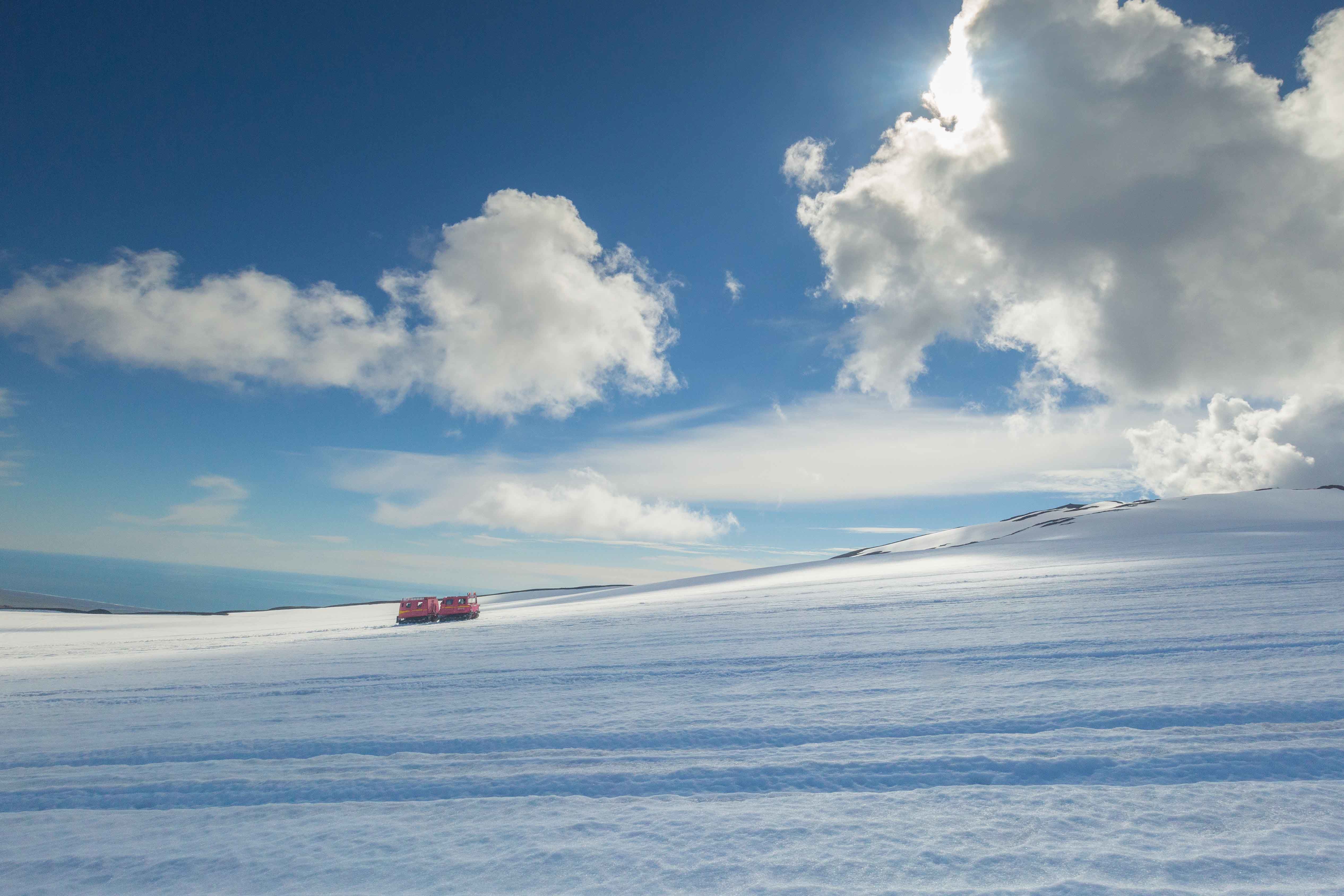 Clear sunny skies presented the perfect conditions for exploring the Vatnajökull glacier. Although for the super Jeeps driving up the glacier, the snow proved to be a little softer and trickier to drive through. The weather stayed favourable for our trip to the beautiful black sands and icebergs followed by a visit to Jökulsarlon, the large lagoon left in front of the glacier as it retreats rapidly back. Our day finished off with a 19:40 arrival back at National Geographic Orion, which meant dinner was ready straight away. Afterward, we enjoyed a very entertaining musical revue put on by the crew, performing some old favourites (including some favourites no one would dare admit were favourites).