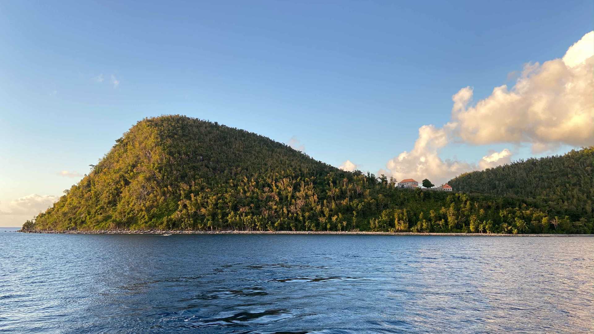 We took an hour’s drive up to the heights of Morne Diabolotin—at 4,775 feet the tallest mountain on the island and the second tallest mountain in the Antilles. The island in its wettest parts receives upwards of 400 inches of rain a year. In the time before Hurricane Maria we would have been in a dark, cool rain forest; now because of the extensive damage to the vegetation caused by 200-mile-per-hour winds, the sun penetrated the canopy all the way to the forest floor.