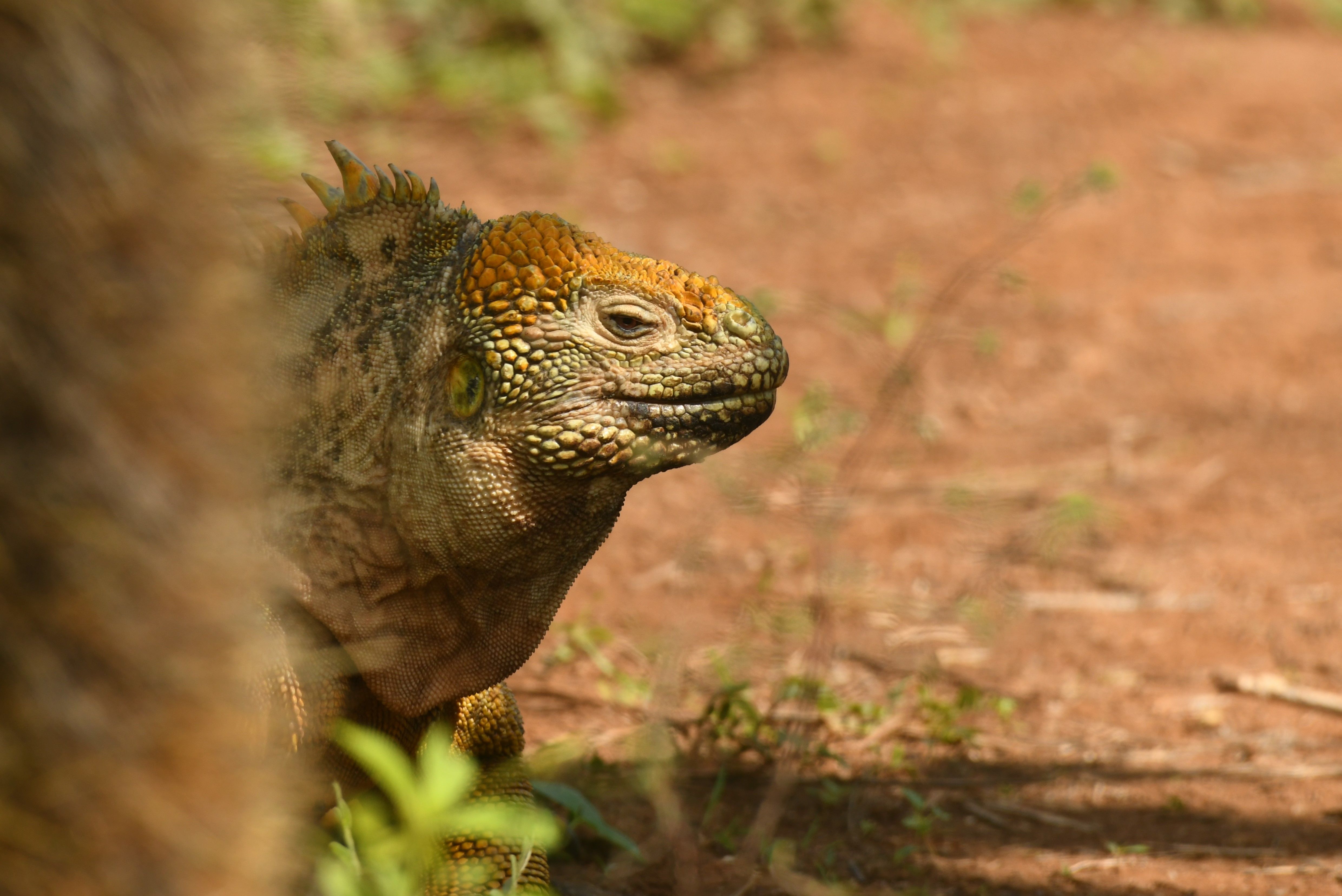 Northwest of Santa Cruz is a place known as Dragon Hill, home to a special animal that we hoped to find today–the yellow land iguana. Our adventurous guests joined us for an early exploration. We crossed lava rocks, beaches, ponds, and muddy trails. We were surrounded by the greens and reds of the plants, which paint the island with an outstanding mosaic of color. On our hike, we encountered the yellow land iguana. We also observed seabirds, marine iguanas, lava lizards, and fish in the tide pools.
