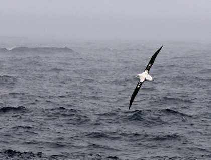 the very early hours of the morning the ship’s motion was visibly different from that enjoyed the night before as we sailed east along the Beagle Channel. By the time we ventured up on deck the ship was well out into the Drake Passage and our only companions were the seabirds who have made these waters their home. The weather today is coming from the east, which is not usual; there is not much wind, but occasional swells are fairly large.